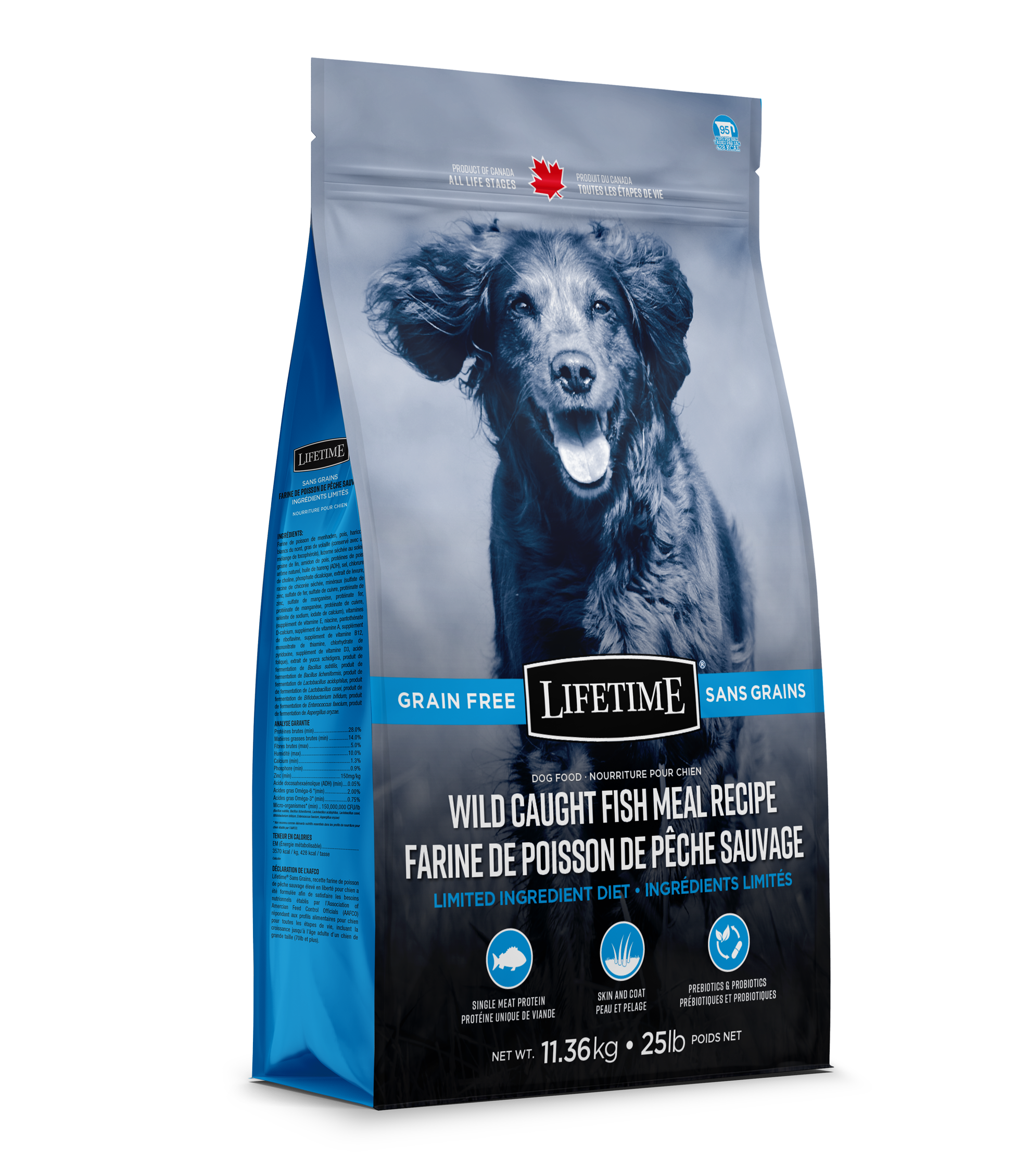 Lifetime Grain-Free, Wild Caught Fish Meal Recipe Dog Food is formulated to meet the nutritional levels established by the AAFCO Dog Food Nutrient Profiles for all life stages including the growth of large size dogs (70 lb or more as an adult).