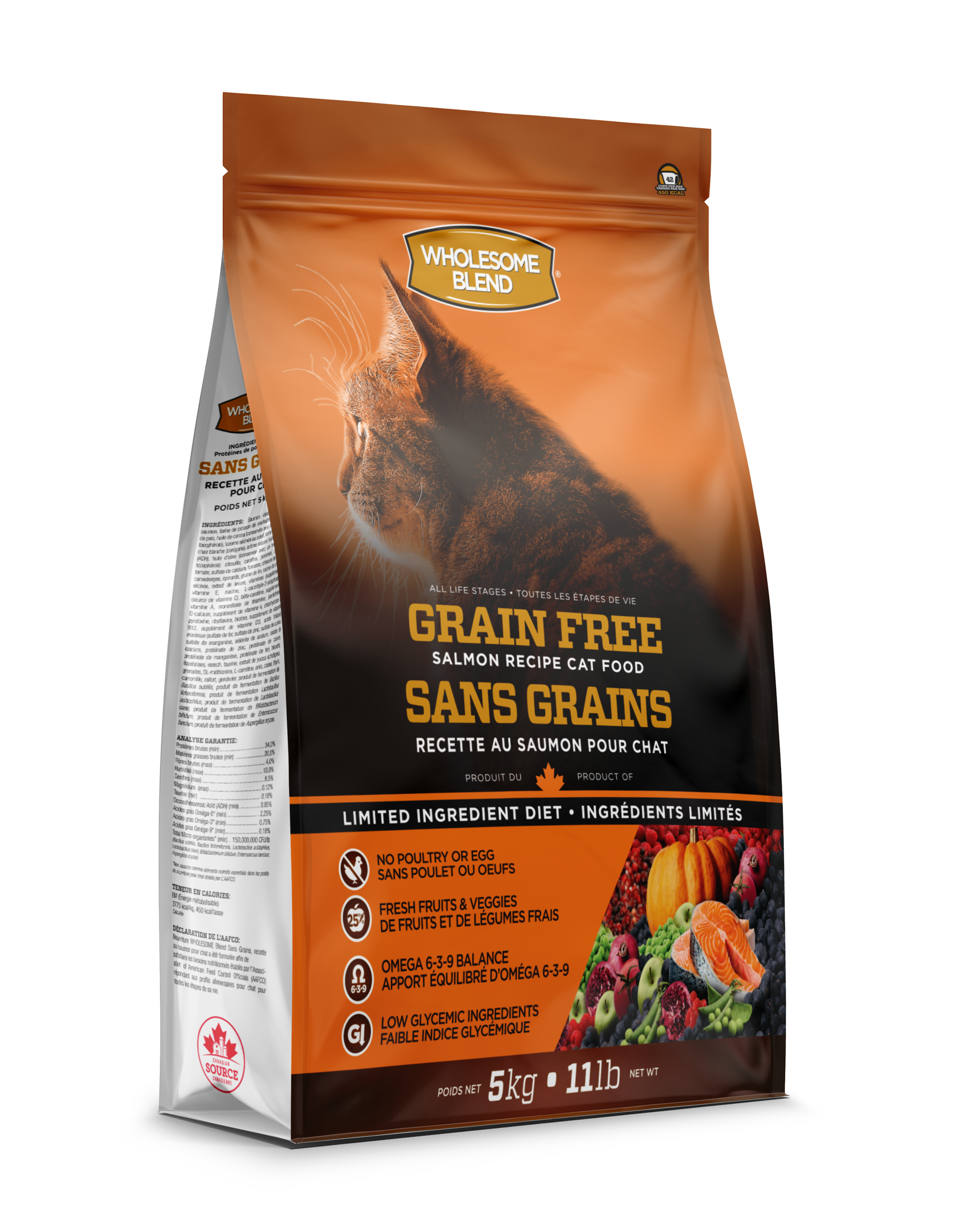 Wholesome Blend Grain-Free Salmon Recipe Cat Food is formulated to meet the nutritional levels established by the AAFCO Cat Food Nutrient Profiles for all life stages.