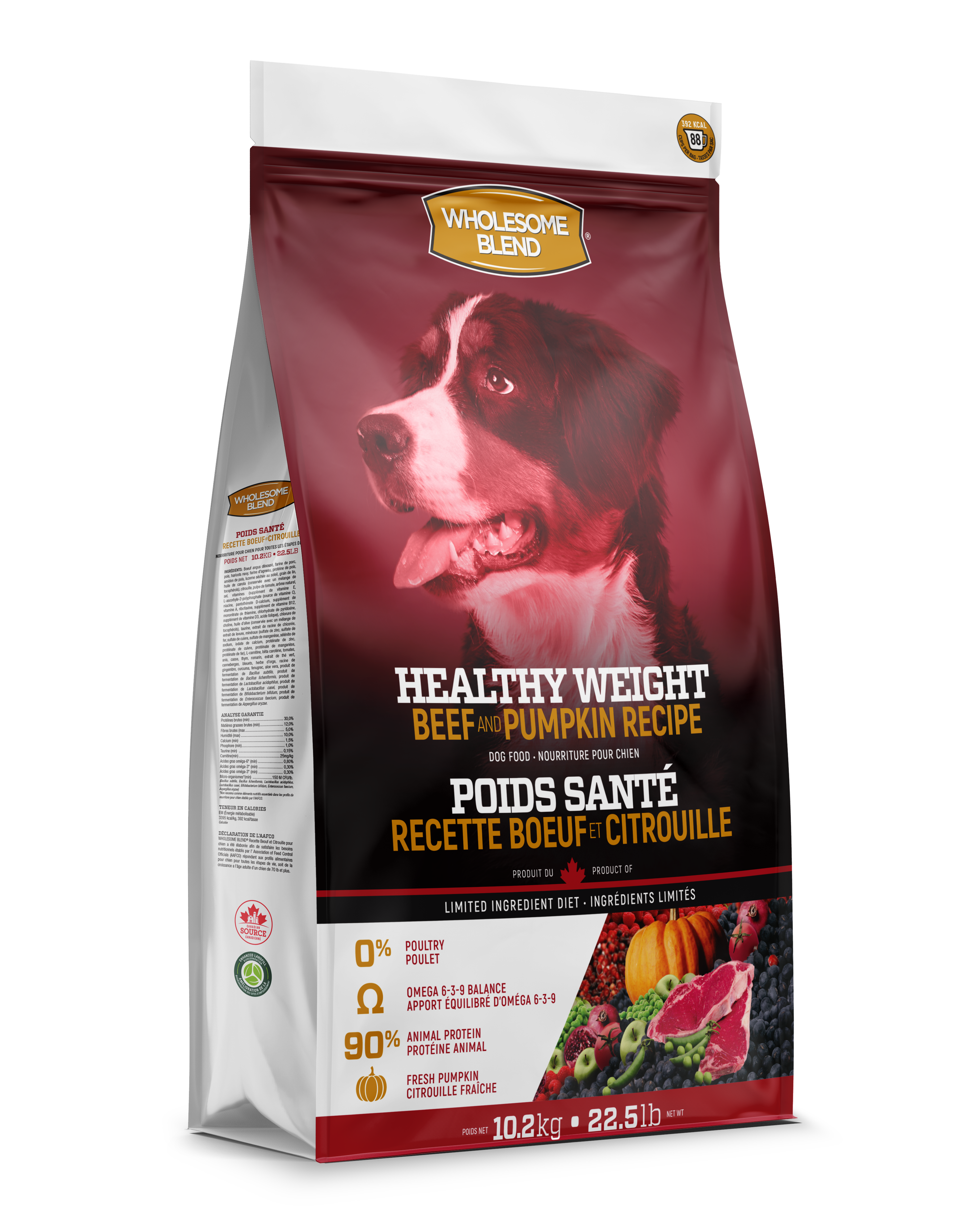 Wholesome Blend Healthy Weight Beef & Pumpkin Recipe Dog Food is formulated to meet the nutritional levels established by the AAFCO Dog Food Nutrient Profiles for maintenance.