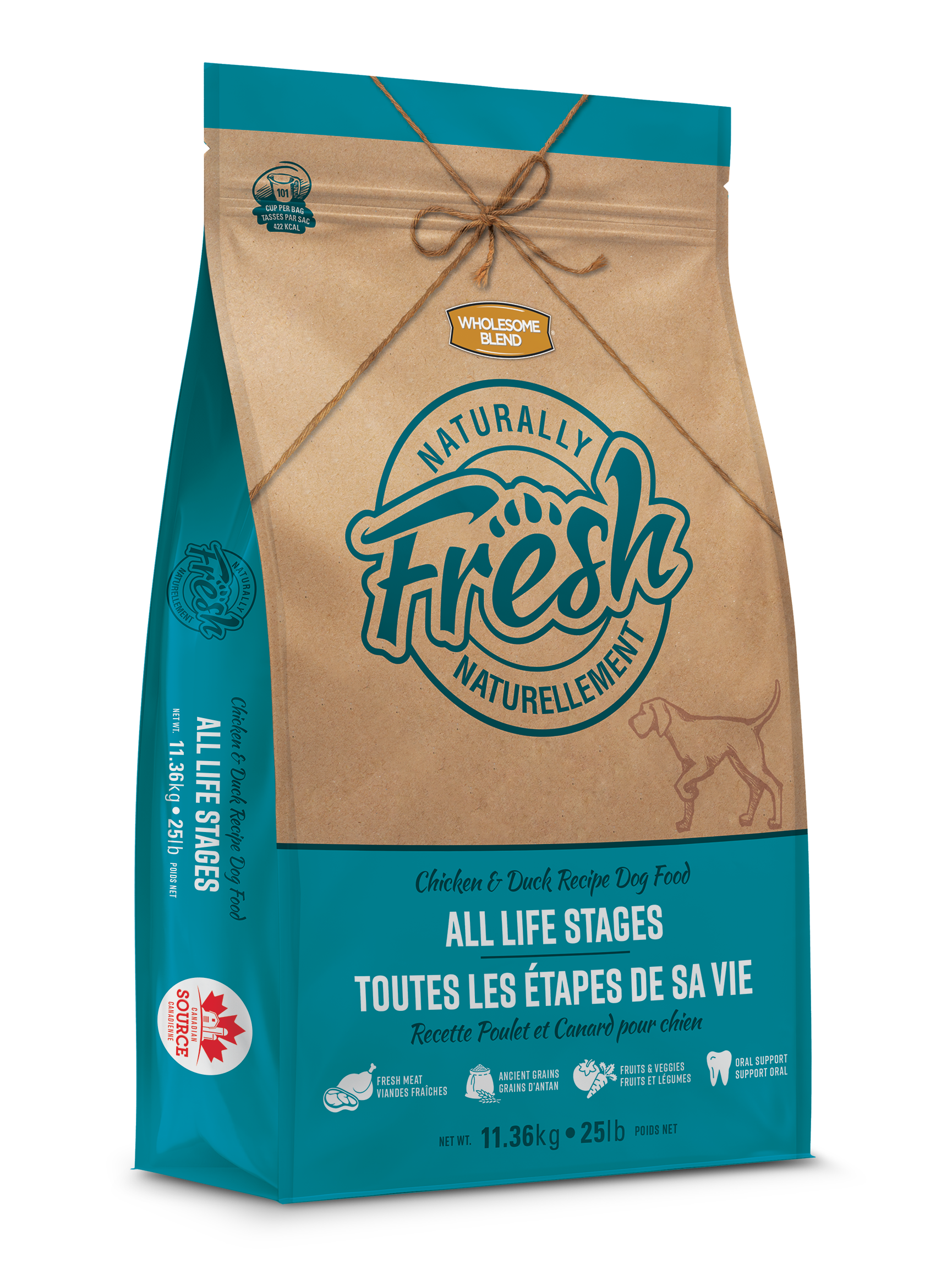 Wholesome Blend Naturally Fresh Chicken and Duck Recipe Dog Food is formulated to meet the nutritional levels established by the AAFCO Dog Food Nutrient Profiles for all life stages including growth of large size dogs (70 lb or more as an adult).