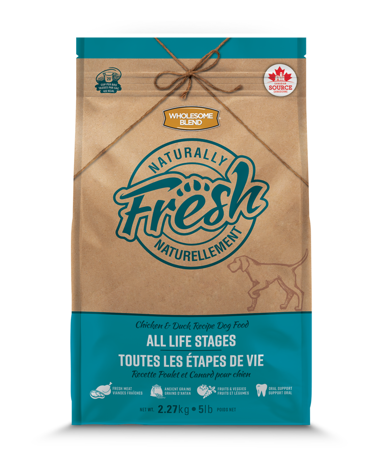Wholesome Blend Naturally Fresh Toy/Small Breed Chicken & Duck Recipe Dog Food is formulated to meet the nutritional levels established by the AAFCO Dog Food Nutrient Profiles for all life stages including growth of large size dogs (70 lb. or more as an adult).