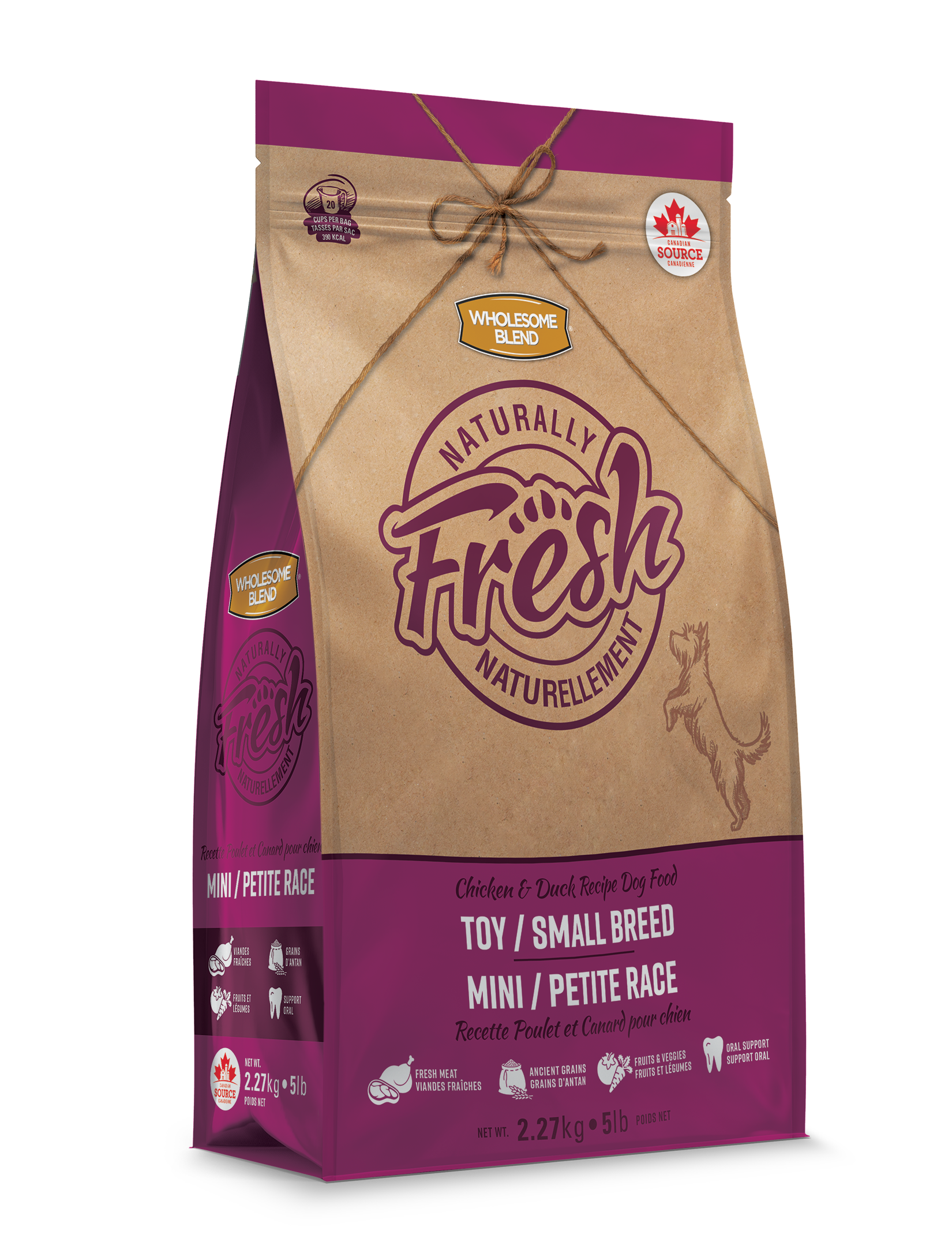 La recette Wholesome Blend Naturellement Fresh au poulet et au canard pour les chiens miniatures et de petite race est formulée pour répondre aux besoins nutritionnels établis par le profil nutritionnel des aliments pour chiens de l’AAFCO pour tous les stades de vie incluant la croissance des chiens de grande race (70 lb ou plus à l’âge adulte).